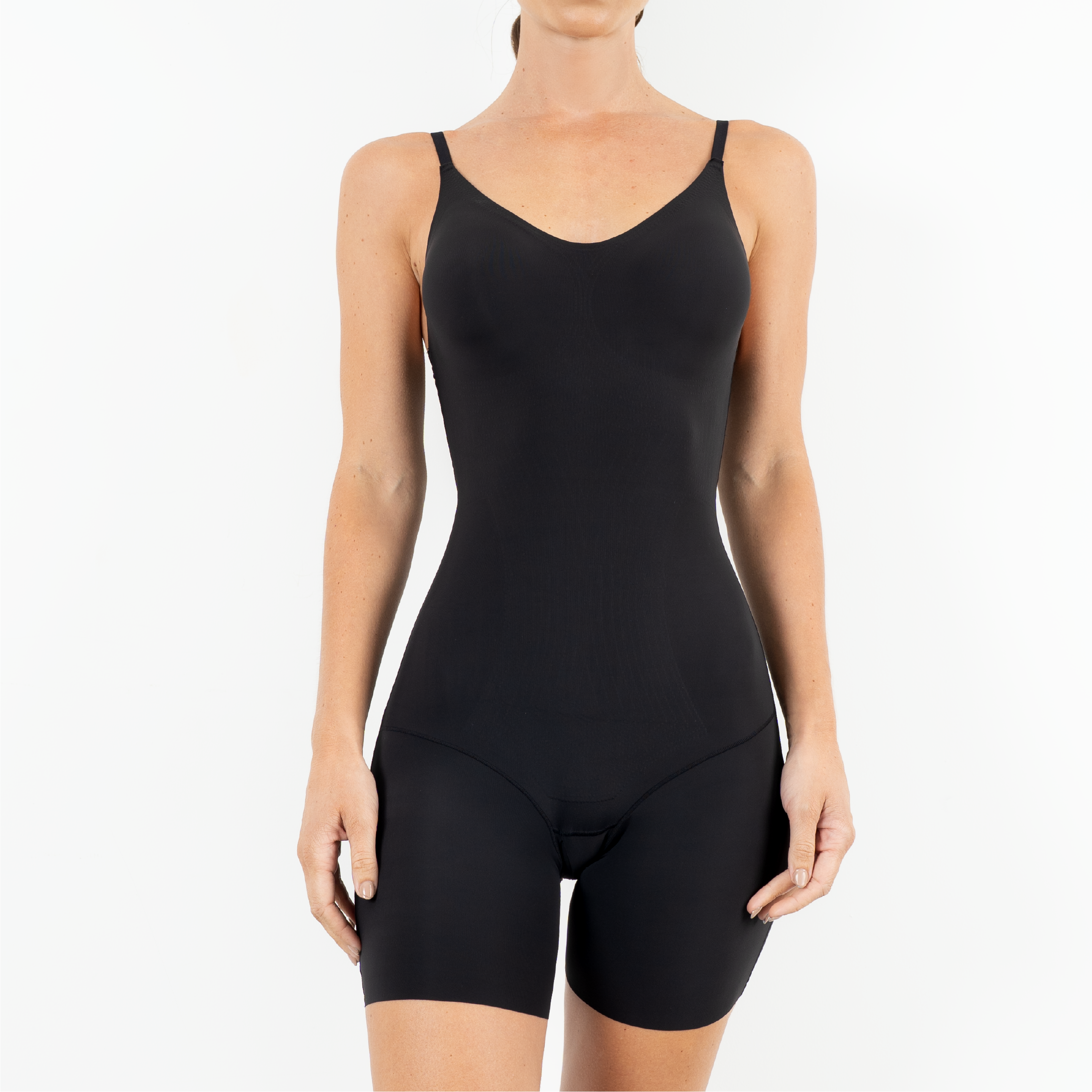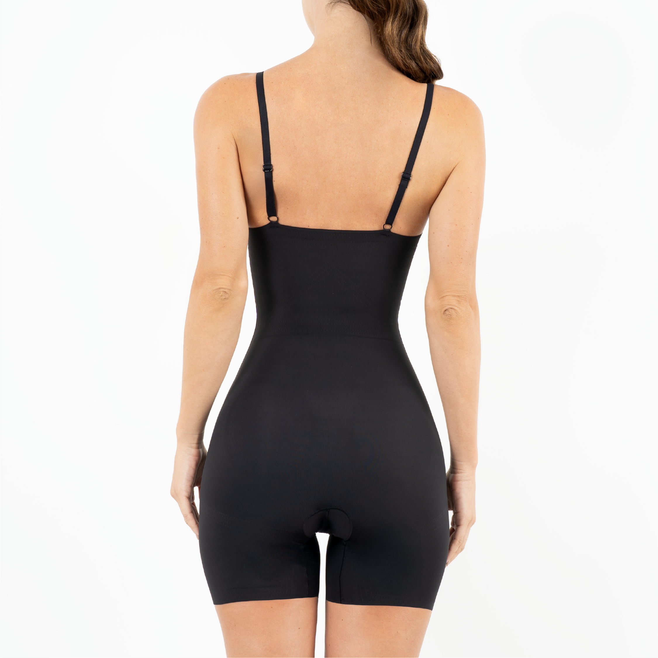 Body faja de ajuste firme diseñado para estilizar abdomen, cintura y caderas, logrando una silueta más definida con total comodidad. Su diseño en una sola pieza y tecnología seamless brinda un acabado liso bajo la ropa. Cuenta con tirantes delgados regulables tipo brasier para mayor soporte y abertura entrepierna para mayor practicidad.