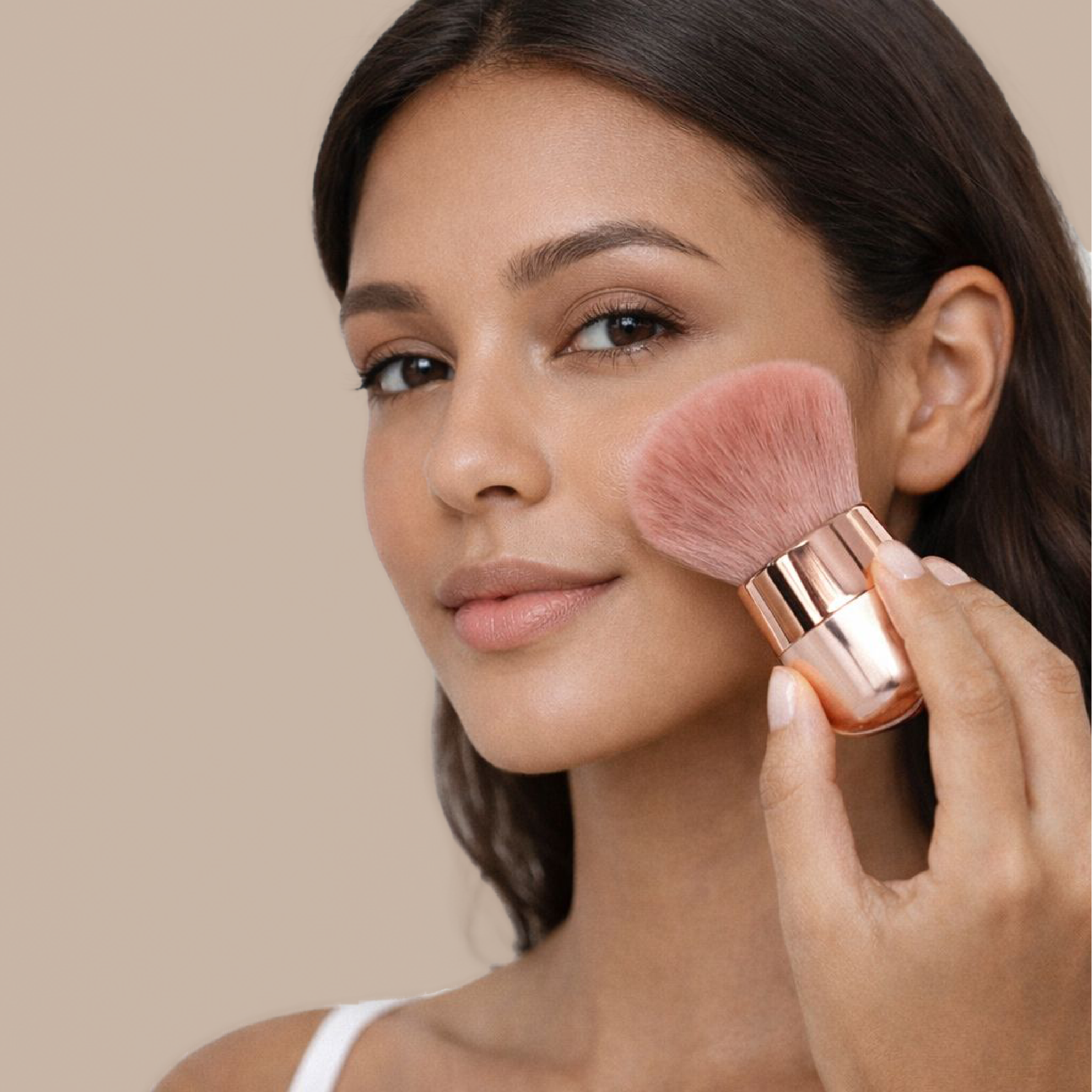 Brocha para rubor con cerdas suaves y densas que permiten una aplicación uniforme y difuminado perfecto. Su elegante mango en tono oro rosa aporta un toque sofisticado a tu colección de maquillaje. Ideal para lograr un acabado natural y radiante